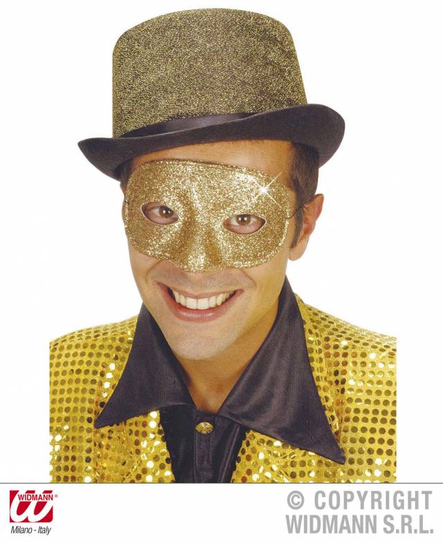 Fin enkel venetiansk maskerademaske i gull glitter. Passer begge kjønn.