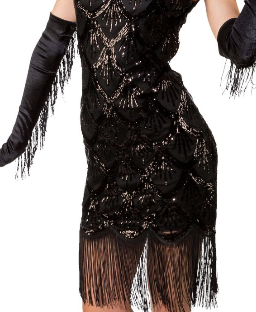 Gatsbykjole Svart med Svarte Paljetter og Frynser