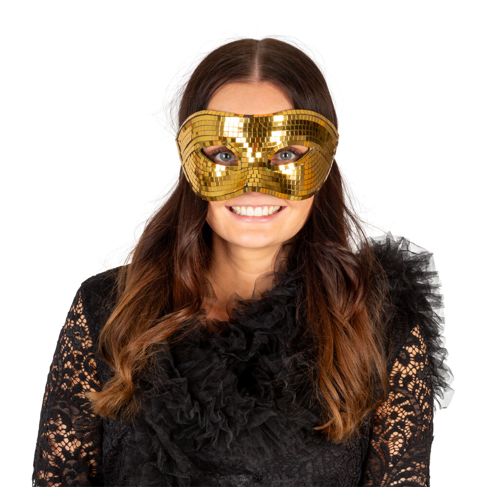 Halvmaske med små speil akkurat som i en discokule.